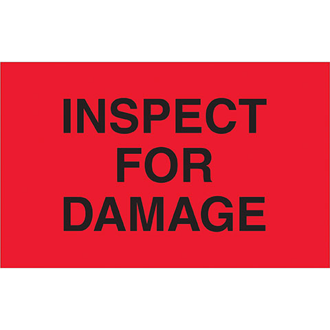 1 1/4 x 2" – "Inspect For Damage" (Fluorescent Red) Labels