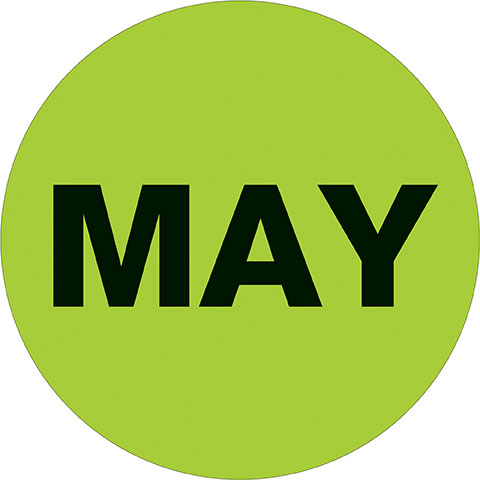 1" Circle – "MAY" (Fluorescent Green) Months of the Year Labels