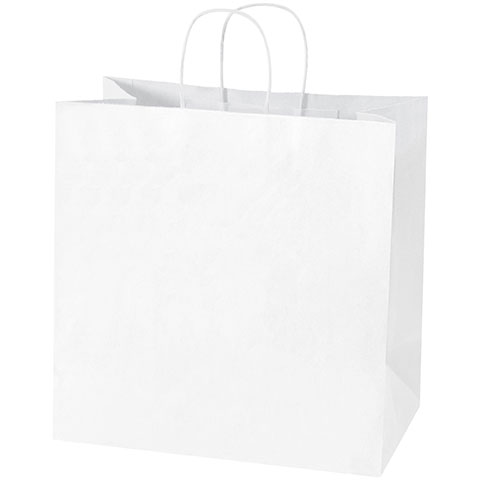 Heavy-duty White Paper Shopping Bags make packing purchases easy.