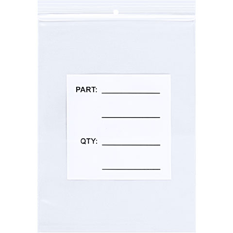 Pre-printed bags identify where to print part number and quantity to ensure consistent labeling.