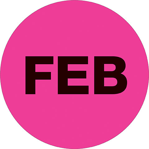 2" Circle – "FEB" (Fluorescent Pink) Months of the Year Labels