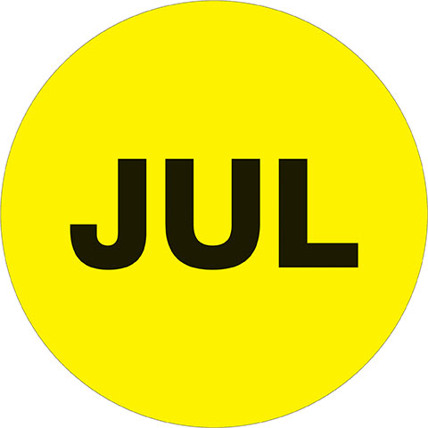 2" Circle – "JUL" (Fluorescent Yellow) Months of the Year Labels