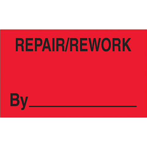 3 x 5" – "Repair/Rework By" (Fluorescent Red) Labels