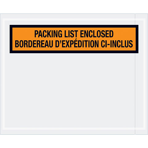 Packing List Envelopes are pre-printed with “Packing List Enclosed” in English and French on heavy 2 Mil poly.