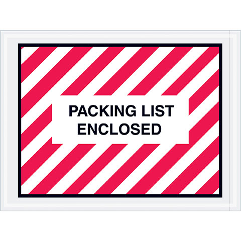 4 1/2 x 6" Red (Striped) "Packing List Enclosed" Envelopes