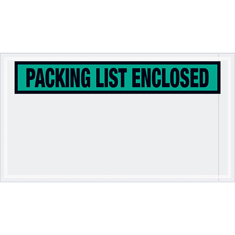 Panel face, colored Packing List Envelopes are pre-printed with “Packing List Enclosed” on heavy 2 Mil poly.