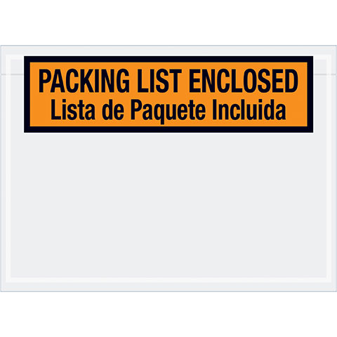 Envelopes are pre-printed with “Packing List Enclosed” in English and Spanish, on heavy, 2 Mil poly.