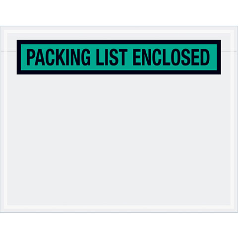 Panel face, colored Packing List Envelopes are pre-printed with “Packing List Enclosed” on heavy 2 Mil poly.
